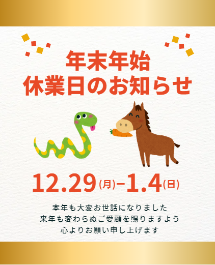 「休業日:2024年12月28日(土)~2025年1月5日(日)」